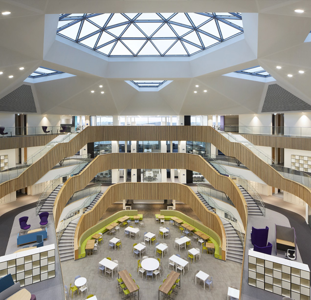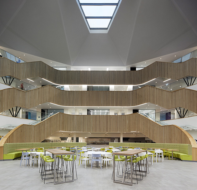 With a range of terraces and collaboration areas arranged around the atrium, as well as a central cafe and restaurant hub, the building allows people to break away from their desk bringing an air of vibrancy to the workplace.